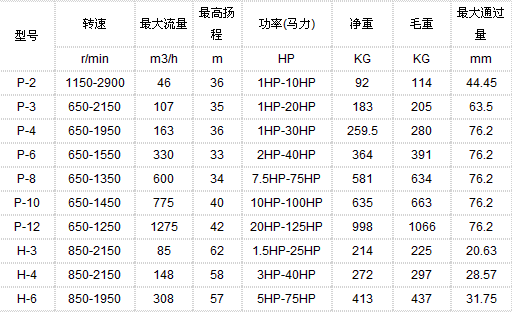 自吸排污泵性能参数: