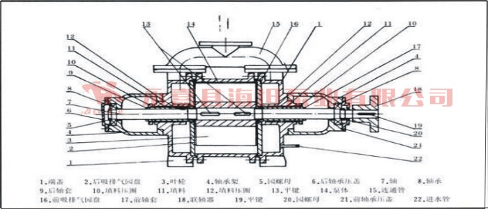 2) 启动电动机(从传动方向看,电机为顺时针方向旋转,右侧为吸气口,左侧为排气口)。泵为机械密封,应先给机械密封加水再起动电动机;