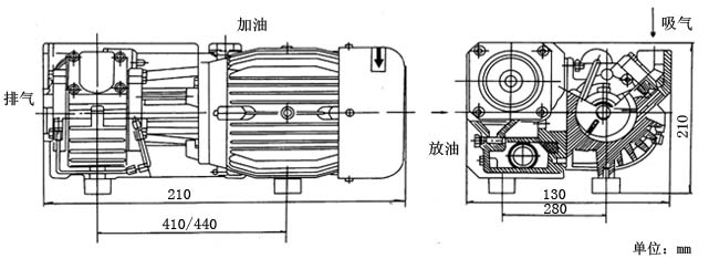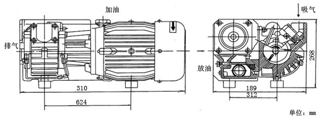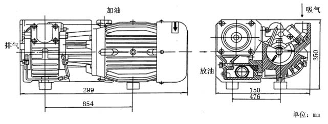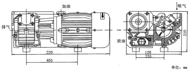 XD型单级旋片式真空泵安装尺寸图:
