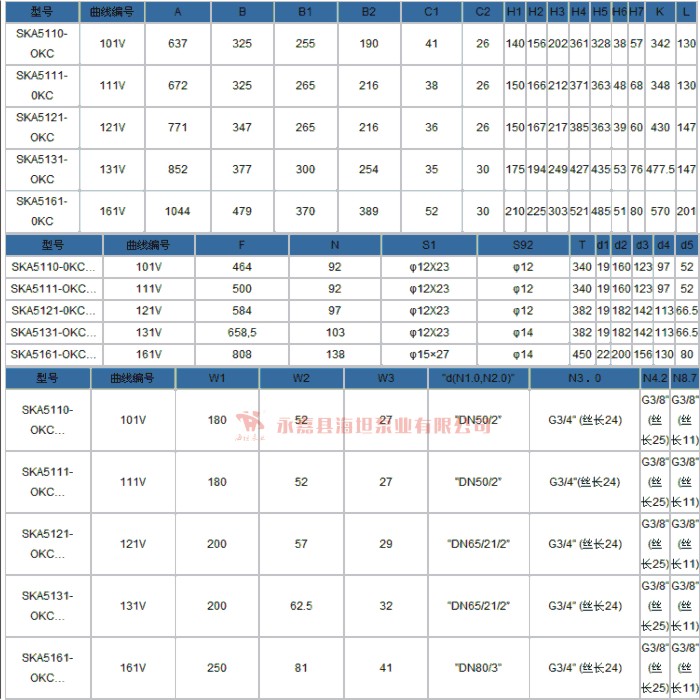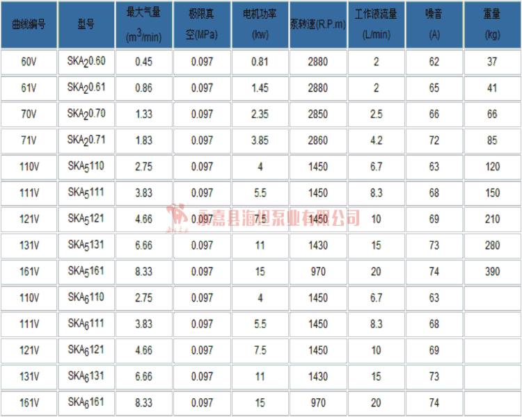 (即定货号,但仅限于标准型)如本例中可从71V查得泵型为SKA2071-ONC06-IP