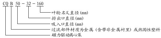 CQB型磁力泵型式及基本参数符合JB/T 7742―1995《小型磁力驱动离心泵型式与基本参数》标准和《小型磁力驱动离心泵三个标准的补充规定》。