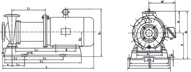 【CQB型不锈钢磁力离心泵】安装尺寸图: