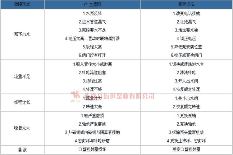 【CQB型不锈钢磁力离心泵】故障原因及排除方法: