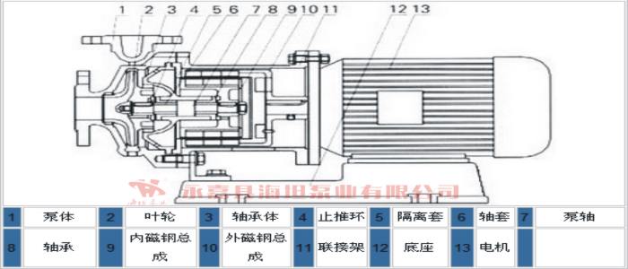 【CQB型不锈钢磁力离心泵】结构爆炸图: