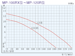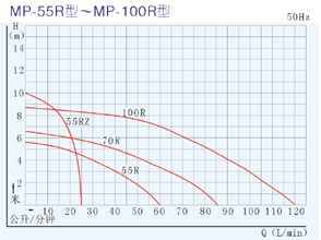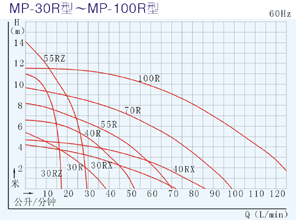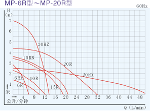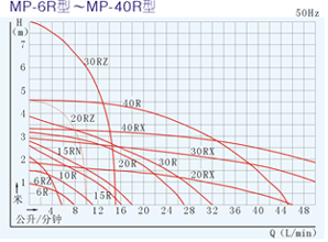 【MP型塑料微型磁力驱动循环泵】性能曲线图: