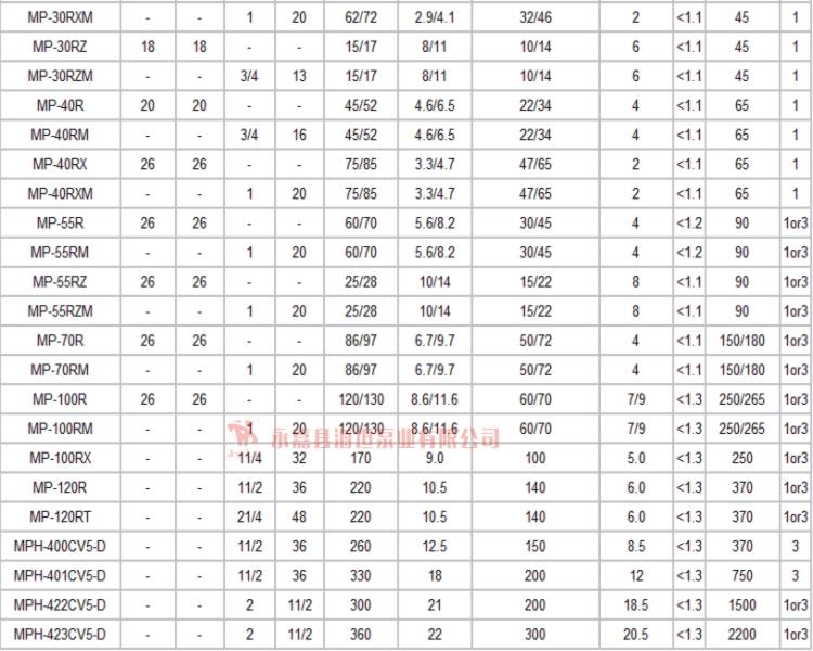 【MP型塑料微型磁力驱动循环泵】性能参数: