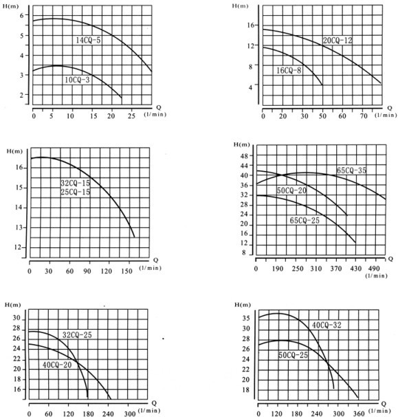 (2)不锈钢泵(1Cr18Ni9Ti)型号有:16CQ—8、20CQ—12、32CQ—15、32CQ—25、40CQ—20,40CQ—32、50CQ—25,50CQ—32,50CQ—50,65CQ—25,65CQ—32、80CQ—35、80CQ—50、100CQ—35、100CQ—50、125CQ—20、125CQ—32、150CQ—20、150CQ—32。