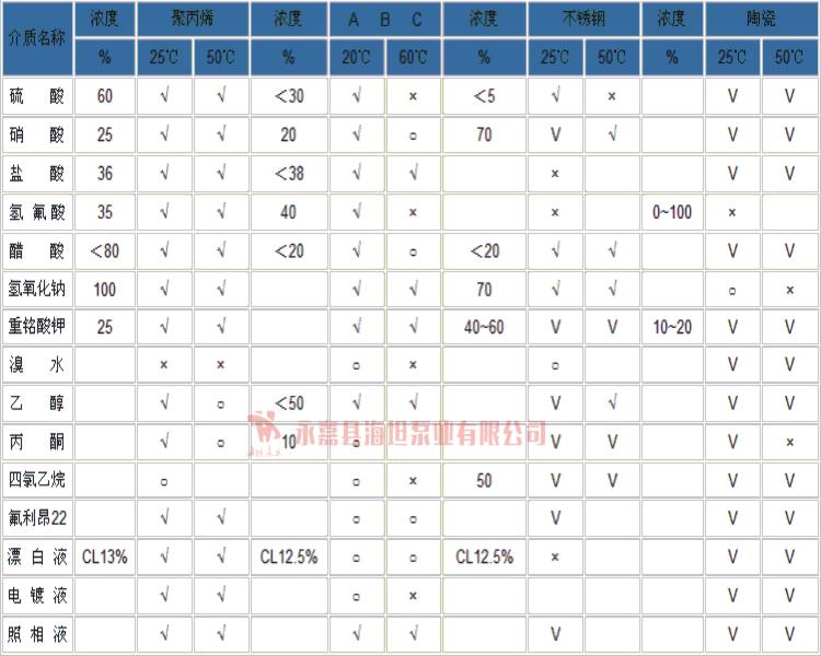 【CQ型磁力驱动泵】材料耐腐蚀性能(供参考)