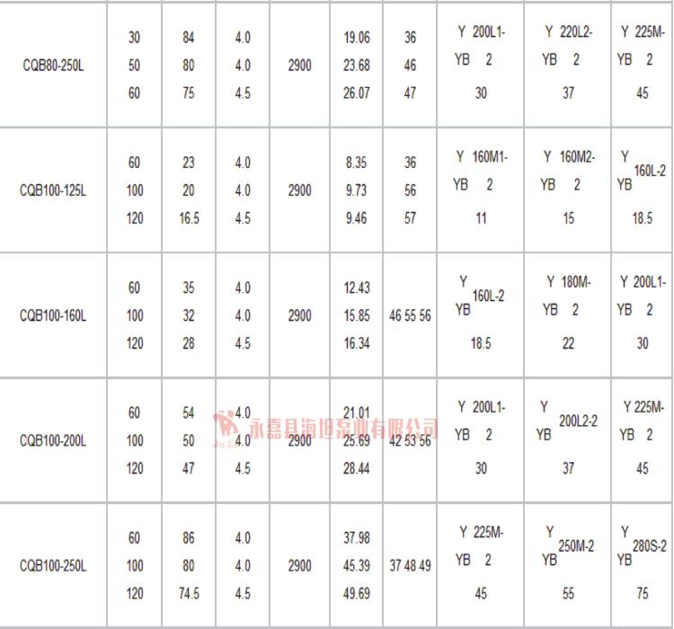 6、泵的绝大多数零部件与CQB系列磁力泵互换,泵的性能与CQB系列相同;流量为3.2-100m 3 /h;扬程为20-80m;功率为0.75-75Kw