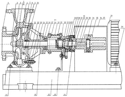 (3)轴承座中设置有两个球轴承、靠泵叶轮侧的一个球轴承用所输送的导热油润滑,靠联轴器侧的一个球轴承则用高温润滑脂润滑: