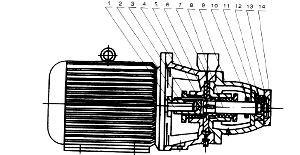 泵体4与电机法兰连接,泵轴8装在电机轴头上是动配合,键2在键槽内可自由滑动。