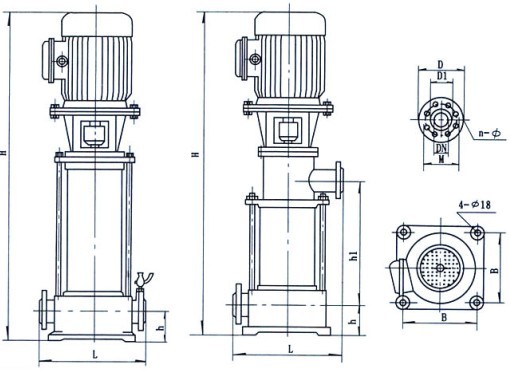 【GDL系列立式多级管道离心泵】安装尺寸图: