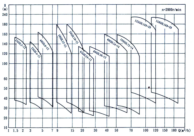 【GDL系列立式多级管道离心泵】曲线图谱:
