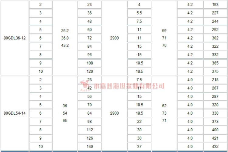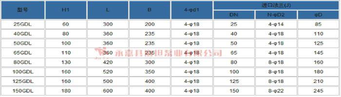 【GDL系列立式多级管道离心泵】技术参数: