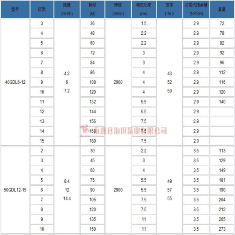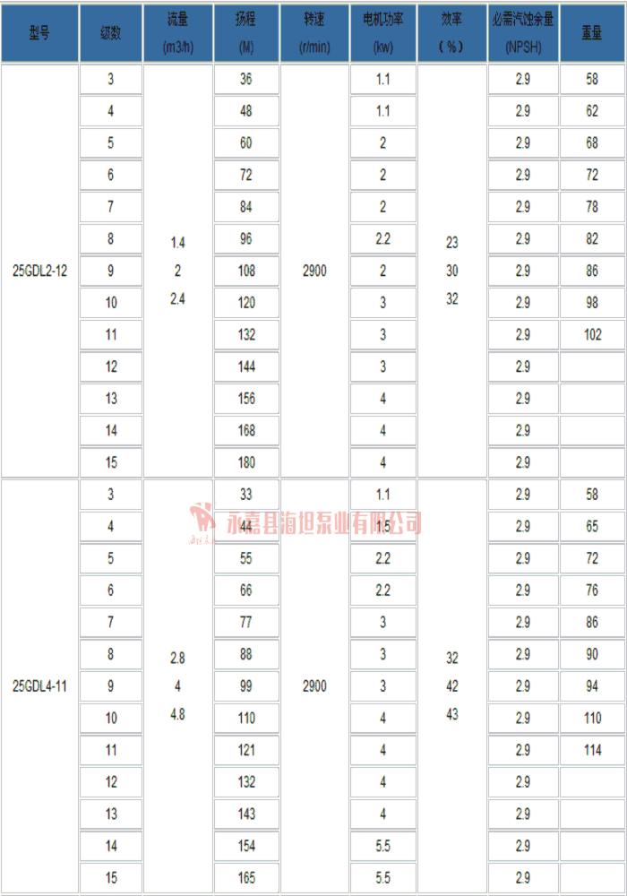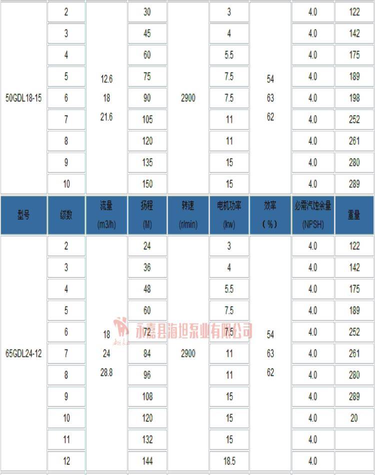 【GDL系列立式多级管道离心泵】性能参数: