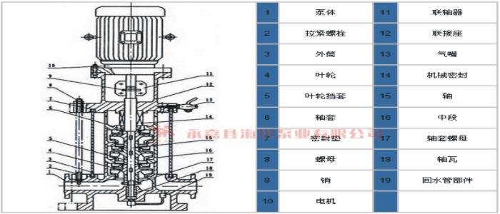 【GDL系列立式多级管道离心泵】结构图: