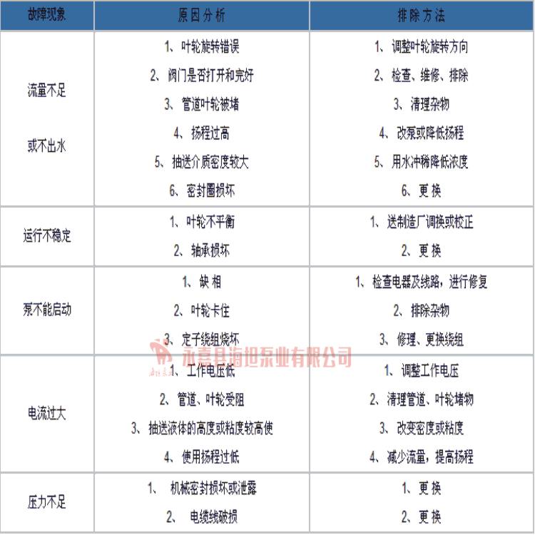 【LW型立式无堵塞排污泵】故障原因及排除方法: