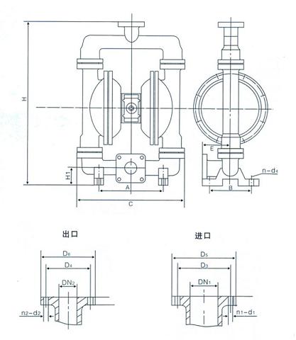 【QBY型铸铁气动隔膜泵】安装尺寸图: