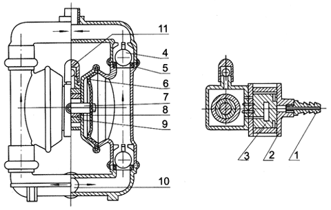 【QBY型铸铁气动隔膜泵】产品结构图: