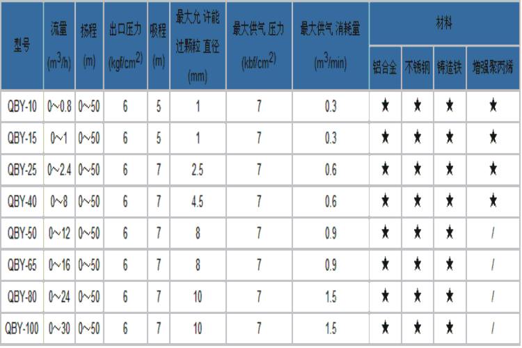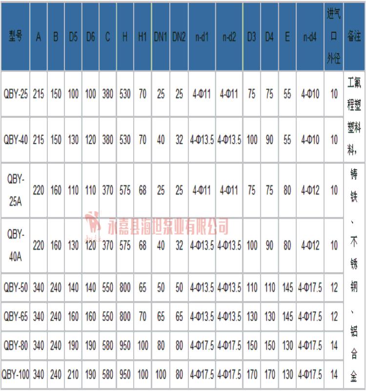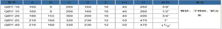 【QBY型铸铁气动隔膜泵】性能参数: