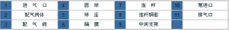 8、结构简单、易损件少,该泵结构简单安装、维修方便,泵输送的介质不会接触到配气阀,联杆等运动件,不象其他类型的泵因转子、活塞、齿轮、叶片等部件的磨损而使性能逐步下降;