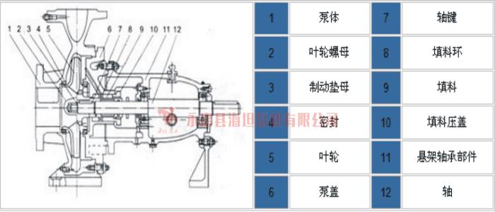 注:用户可根据被输送介质的腐蚀性程度对泵的过流部分主要零件选用不同材料。