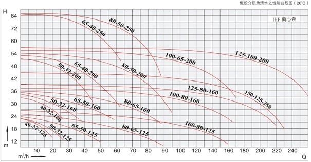 【IHF型衬氟塑料离心泵】性能曲线图: