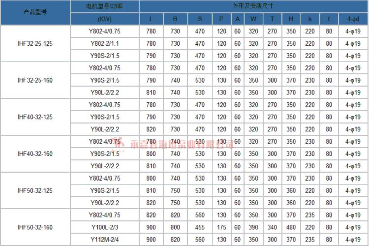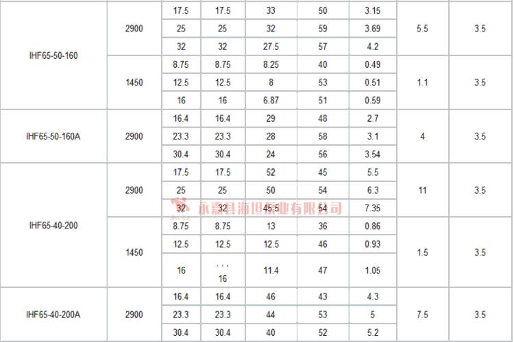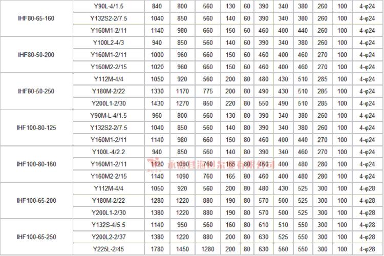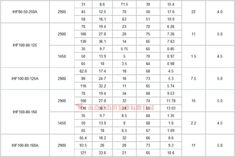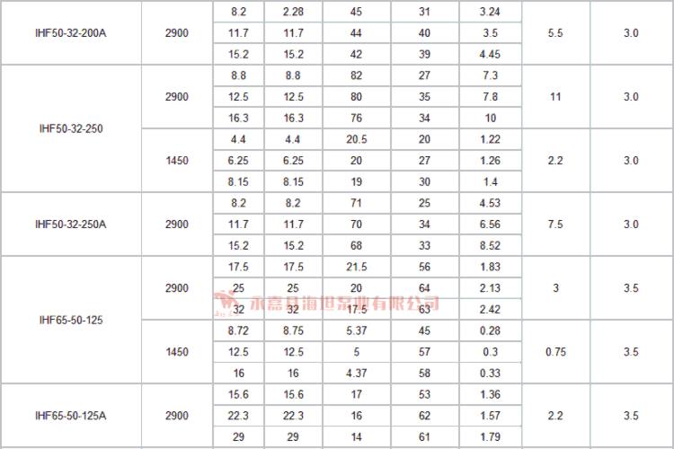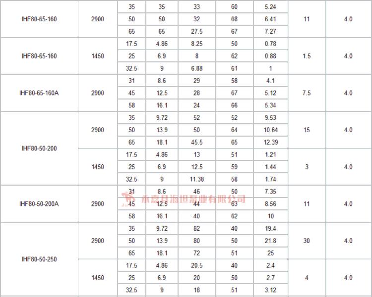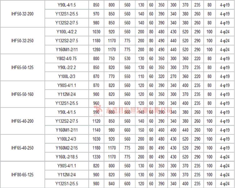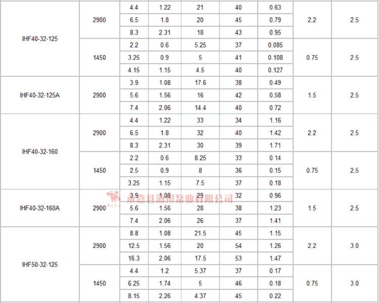 【IHF型衬氟塑料离心泵】技术参数: