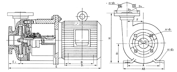 【PF(FS)型强耐腐蚀离心泵】安装尺寸图: