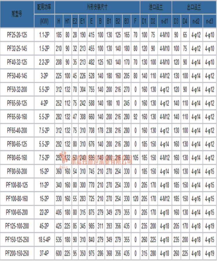 【PF(FS)型强耐腐蚀离心泵】性能参数: