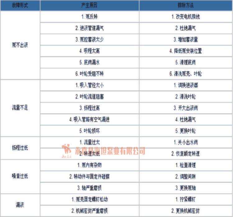 【PF(FS)型强耐腐蚀离心泵】故障原因及排除方法: