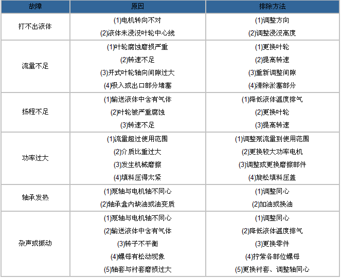 【FY系列不锈钢液下泵】故障原因及排除方法: