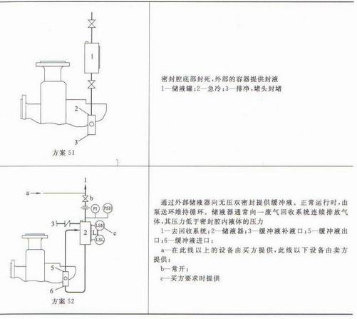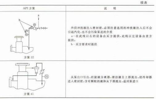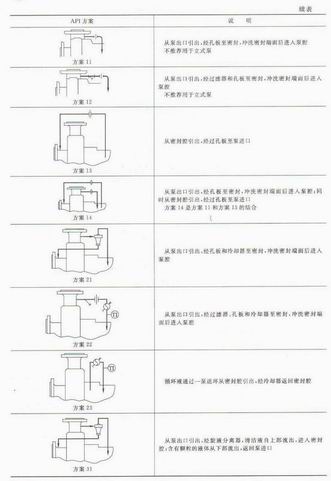 单端面机械密封、无压双密封的内测密封的密封辅助管路系统的选择见表1-24,节流衬套、辅助密封装置和双密封的辅助管路系统的选择见表1-25.