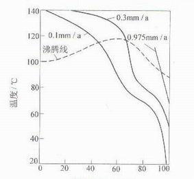 图2-1是00Cr19Ni11、图2-2是00Cr18Ni4Si4不锈钢在硝酸中的腐蚀数据曲线。在硝酸中,含钼的奥氏体不锈钢是不耐蚀的,尤其在沸腾的硝酸中更是如此,因此,含钼的奥氏体不锈钢通常不在硝酸中使用。