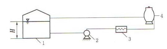 1-冷却水罐:2-冷却水泵:3-机泵空冷器:4-冷却塔:H -液面高度