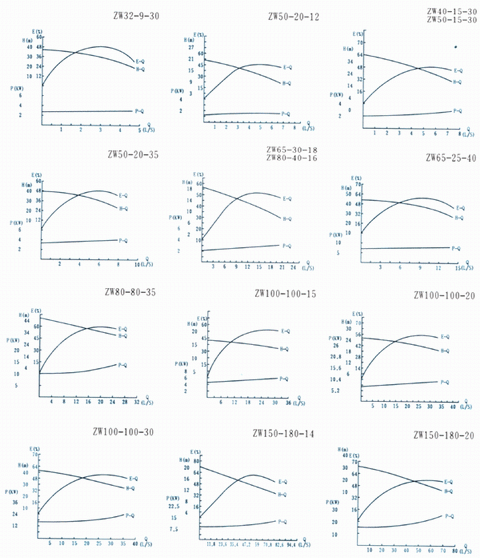 【ZW型自吸排污泵(自吸污水泵)】性能曲线图: