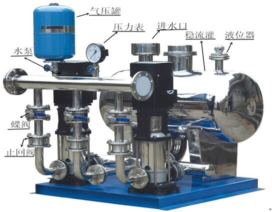 无负压给水设备由气压罐、水泵及电控系统三部分组成,其突出产品的特色是,不需建造水塔,赞助小、占地少,布置灵活,建成投产快。采用水气自动调节、自动运转、节能与自来水自动并网,停电后仍可供水,调试后不需看管。广泛用于企事业单位、住宅区及农村的生产、生活、办公供水。适用于供水户在5000户以内,日供水量在3000m3以内场所,供水高度达100米以上。一般设在地面或地下室。有自来水的单位,使用无负压给水设备可以调节高峰用水量,增加水压,能在高峰用水时,满足大面积用水和高楼层用.