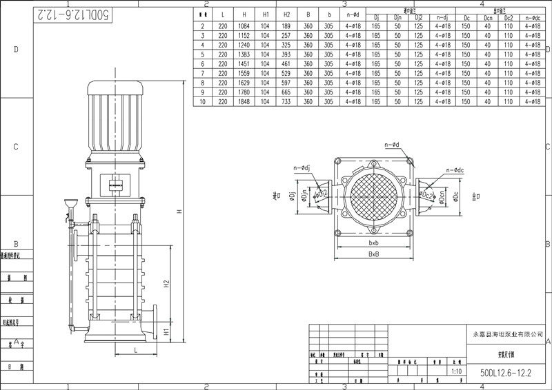 DL立式多级泵旋转方向从驱动端向下看为逆时针方向转动。