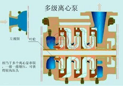 离心泵可适用于工业和城市给排水、高层增压送水、园林喷灌、冷暖水循环增压及设备配套等,可以分为单级离心泵,多级离心泵,管道离心泵,化工离心泵,氟塑料离心泵,耐腐蚀离心泵等等.本页为你介绍多级离心泵的工作原理. 当多级离心泵电机带动轴上的叶轮高速旋转时,充满在叶轮内的液体在离心力的作用下,从叶轮中心沿着叶片间的流道甩向叶轮的四周,由于液体受到叶片的作用,使压力和速度同时增加,经过导壳的流道而被引向次一级的叶轮,这样,逐次地流过所有的叶轮和导壳,进一步使液体的压力能量增加。将每个叶轮逐级叠加之后,就获得一定扬程。