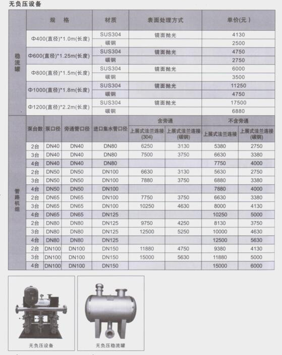 WB无负压给水设备及QZNS型自动供水设备的价格表