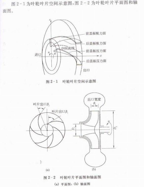 图2-2叶轮叶片平面图和轴面图。